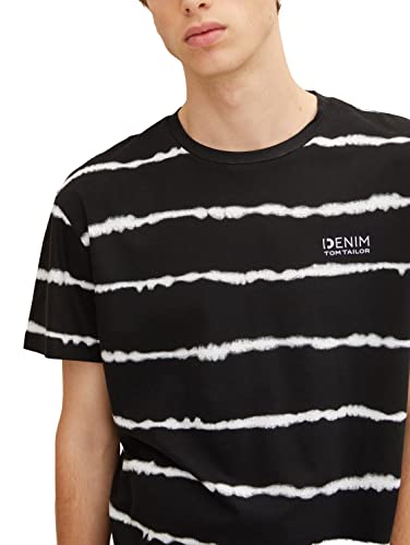 TOM TAILOR Denim Maglietta Relaxed Fit con Stampa, Uomo, Nero (Black Batik Stripe 29851), XL