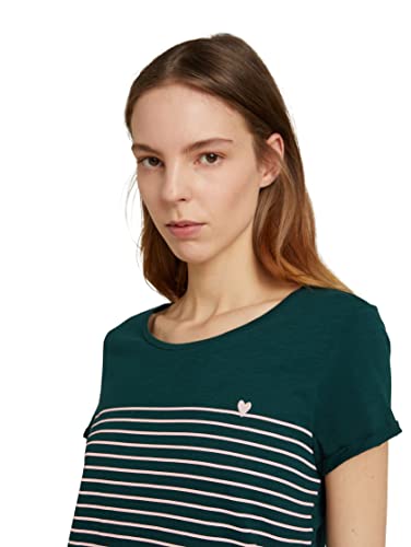 TOM TAILOR Denim Maglietta a Righe con Ricamo a Cuore sul Petto Donna