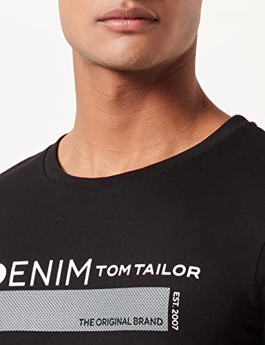 TOM TAILOR Denim Maglietta con Logo Stampato, Uomo, Nero (Black 29999), XXL
