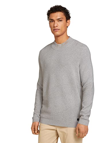 TOM TAILOR Denim Maglione con Collo Alto, Uomo, Grigio (Light Stone Grey Melange 15398), XXS