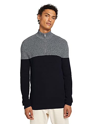 TOM TAILOR Denim Maglione in Cotone Organico con Colorblocking, Uomo, Blu (Sky Captain Blue 10668), M