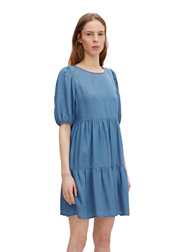TOM TAILOR Denim Le signore Babydoll - Abito con balza 1030127, 10119 - Used Mid Stone Blue Denim, L