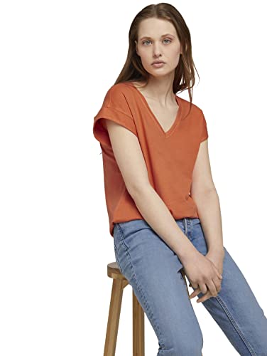 TOM TAILOR Denim Le signore Maglietta con polsini 1025667, 26783 - Sundown Coral, S