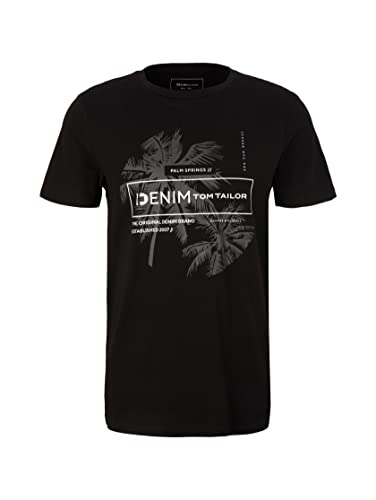 TOM TAILOR Denim T-Shirt con Stampa, Uomo, Nero (Black 29999), L