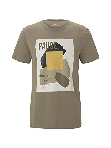 TOM TAILOR Denim T-Shirt con Stampa in Cotone Biologico, Uomo, Verde (Silver Olive 11863), M