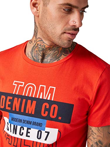 TOM TAILOR Denim T-Shirt con Stampa, Uomo, Rosso (Basic Red 13189), L