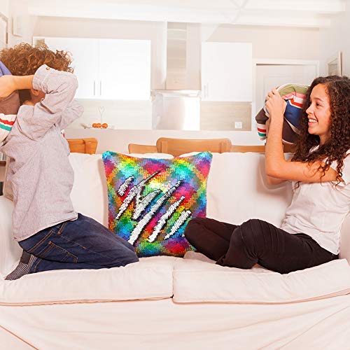 Play Tailor - Federa copricuscino sirena, con magiche paillette reversibili, 40 x 40 cm, Colorful Wave-silver, 40 x 40 cm
