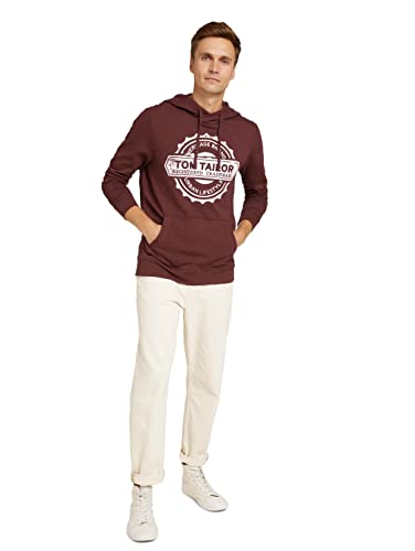 TOM TAILOR Felpa con Cappuccio con Stampa, Uomo, Rosso (Decadent Bordeaux 12931), XS