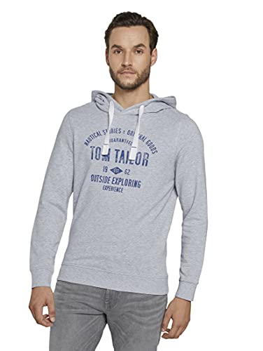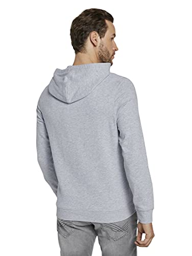 TOM TAILOR Felpa con Cappuccio con Logo Stampato, Uomo, Grigio (Light Stone Grey Melange 15398), XL
