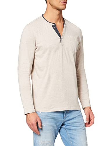 TOM TAILOR Henley - Maglietta a Maniche Lunghe, Uomo, Beige (Cosy Soft Beige Melange 27679), S