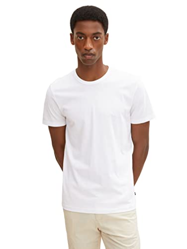 TOM TAILOR Maglietta Basic in Cotone Biologico, Uomo, Bianco (White 20000), XL
