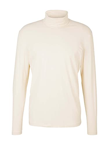 TOM TAILOR Maglietta a Collo Alto Basic, Uomo, Bianco (Soft Buttercream 28130), XXS