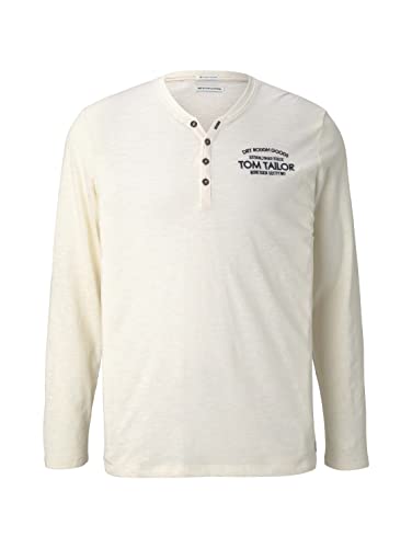 TOM TAILOR Maglietta a Maniche Lunghe con Stampa, Uomo, Marrone (Soft Beige Mock Twist Melange 29000), XS