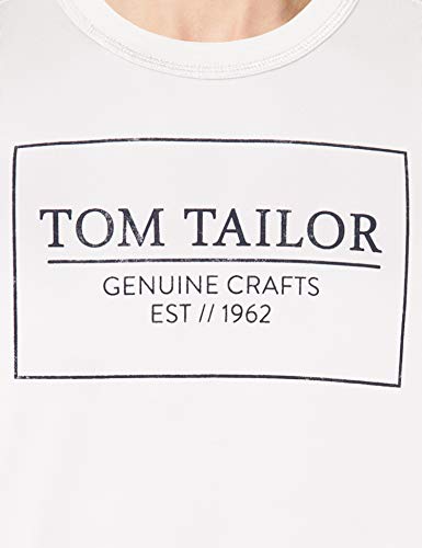 TOM TAILOR Maglietta a Maniche Lunghe con Logo Stampato, Uomo, Bianco (Light Marsmallow 10551), XXL