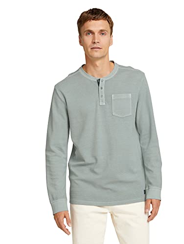 TOM TAILOR Maglietta a Maniche Lunghe con Tasca sul Petto, Uomo, Blu (Light Ice Blue 28129), XL