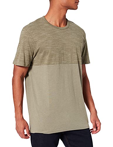 TOM TAILOR Maglietta a Righe con Tasca sul Petto, Uomo, Verde (Light Oak Leaf Melange 11668), XS