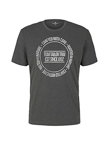 TOM TAILOR Maglietta con Stampa, Uomo, Grigio (Dark Grey Melange 11086), XL