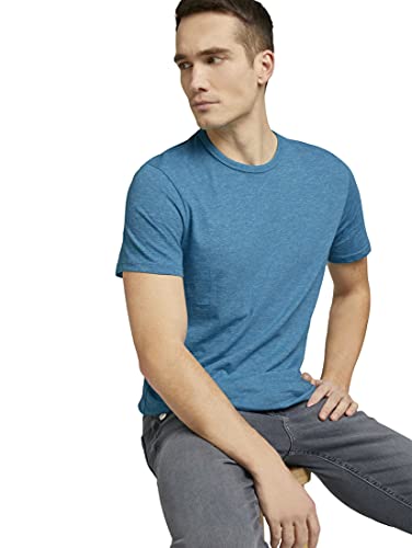 TOM TAILOR Maglietta Strutturata, Uomo, Verde (Teal Bay Green White Melange 22384), M