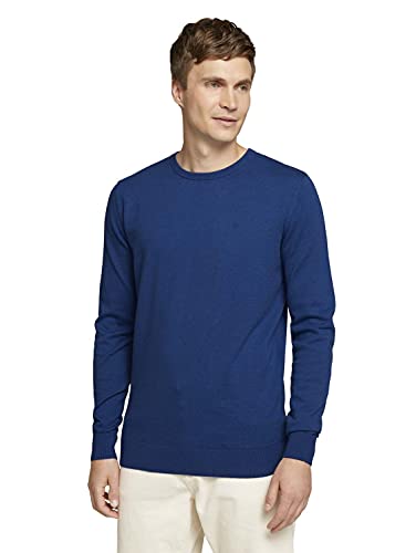 TOM TAILOR Maglione Basic Girocollo, Uomo, Blu (Bright Blue Melange 24248), XXL