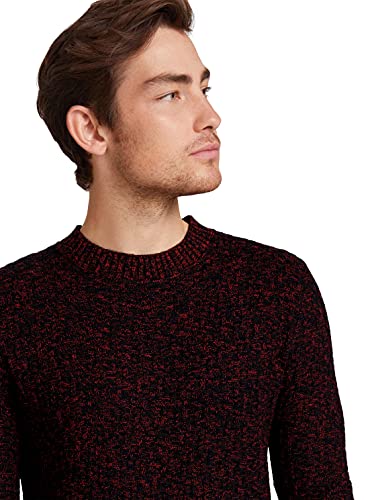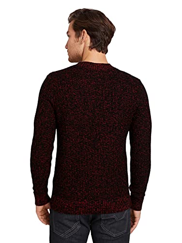 TOM TAILOR Maglione a Maglia Effetto Melange, Uomo, Blu (Navy Red Mouline Structure 28588), S
