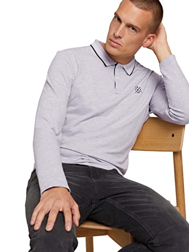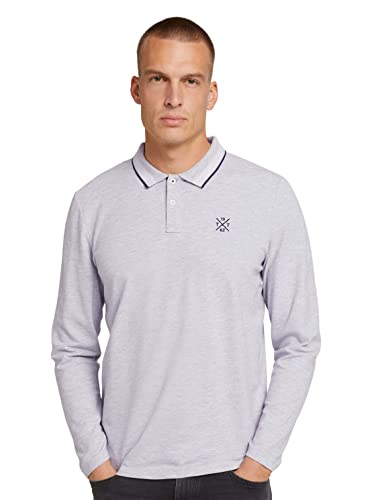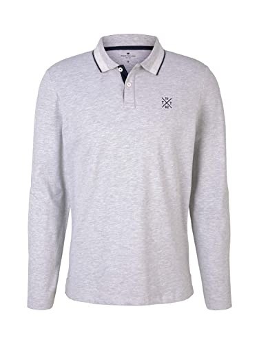 TOM TAILOR Polo a Maniche Lunghe con Piccolo Ricamo, Uomo, Grigio (Light Stone Grey Melange 15398), XS