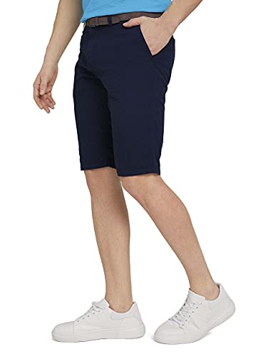 TOM TAILOR Pantaloncini Josh Chino Strutturati con Cintura, Uomo, Blu (Navy Squared Structure 26648), 32