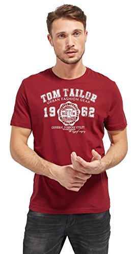 TOM TAILOR Logo Print Version 2 T-Shirt, Cabernet Bordeaux Red, S Uomo
