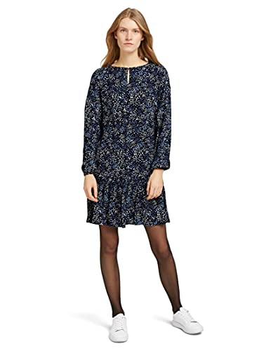 TOM TAILOR Le signore Abito a balza floreale 1022145, 26285 - Navy Multicolor Flower Design, 38