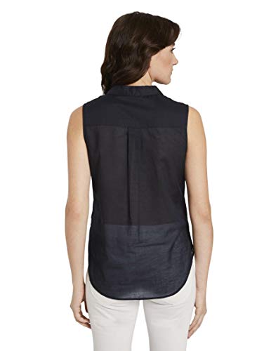 TOM TAILOR Le signore Camicia Henley senza maniche con spacchi laterali 1019497, 14482 - Deep Black, 38