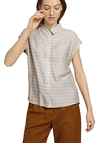 TOM TAILOR Le signore Camicia a maniche corte a righe 1020539, 24332 - Beige Stripe, 38