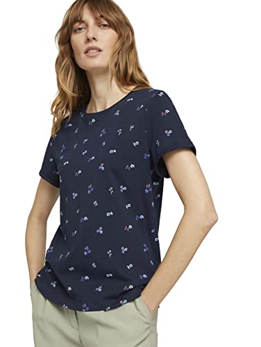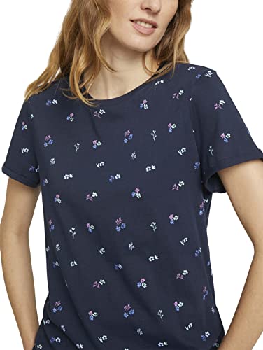 TOM TAILOR Le signore Maglietta in cotone biologico 1025285, 26733 - Navy Colorful Floral Design, M