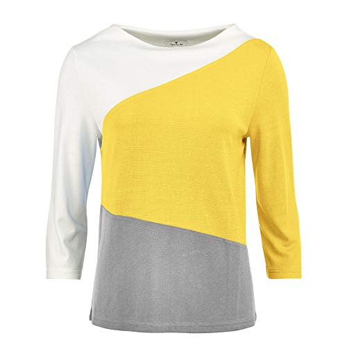 TOM TAILOR Le signore Maglietta a maniche a 3/4 con effetto colorblocking 1016947, 21175 - Jasmine Yellow, L