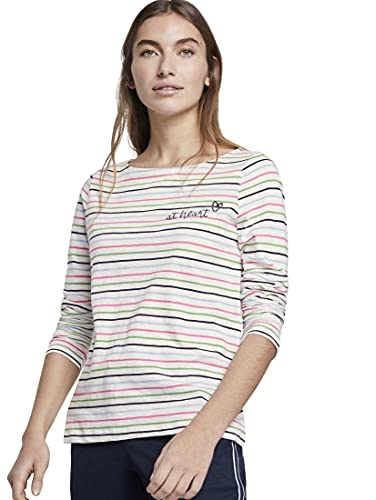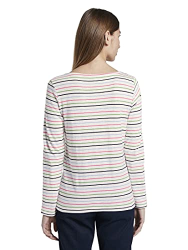 TOM TAILOR Le signore Maglietta a maniche lunghe a righe con stampa 1017455, 23725 - Offwhite Multicolor Stripe, L