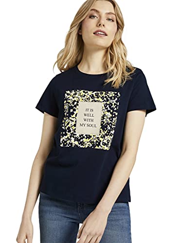 TOM TAILOR Le signore T-shirt con stampa 1021592, 10668 - Sky Captain Blue, XL