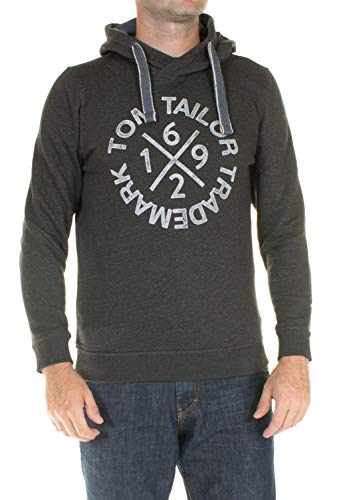 TOM TAILOR Sweathoody mit Kaputze und Druck Felpa, Grigio (Black Grey Melange 2572), Small Uomo