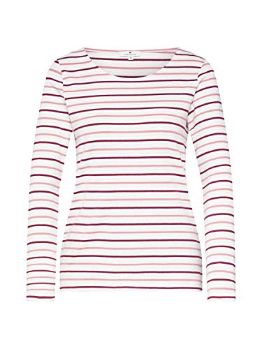 Tom Tailor T-Shirt Bas, Offwhite Stripe, S Maglia a Maniche Lunghe, Avorio (off White Rose Red St 20134), Small Donna