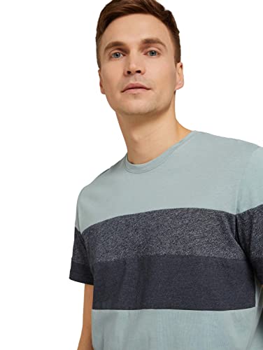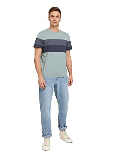 TOM TAILOR T-Shirt a Righe, Uomo, Verde (Dark Smoke Green 12960), S