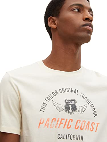 TOM TAILOR T-Shirt con Stampa, Uomo, Bianco (Soft Buttercream 28130), XS