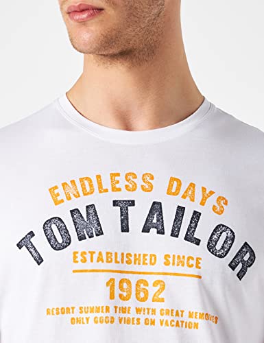 TOM TAILOR T-Shirt con Stampa, Uomo, Bianco (White 20000), XXL