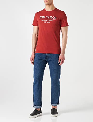 TOM TAILOR T-Shirt con Logo Stampato in Cotone Biologico, Uomo, Rosso (Chili Oil Red 26006), S