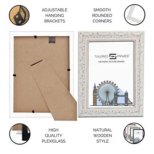 Tailored Frames Vienna White - Cornice portafoto da 30,5 x 25,4 cm, per Foto da 20,3 x 15,2 cm, Stile Rustico, Stile Vintage, con Piano da Tavolo e da Parete, Cornice per Foto con Supporto Bianco