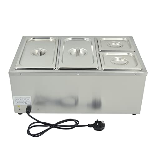 TAIMIKO Scaldavidande Elettrico Professionale con 4 vassoi in Acciaio Inox a bagnomaria con Controllo della Temperatura e Rubinetto di Scarico 1500W 220-240V Certificazione CE