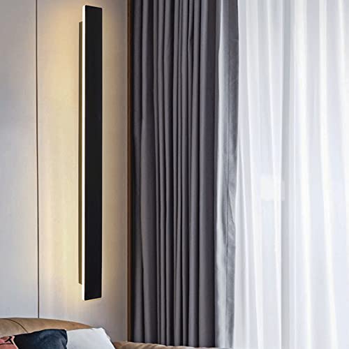 Taimowei Creative Long Strip Headboard Lights, Black Linear Metal Wall Lamp With Frosted Acrylic Shade, Modern Led 3000K Wall Sconce, Simple Living Room Decorative Atmosphere Lamps/60Cm