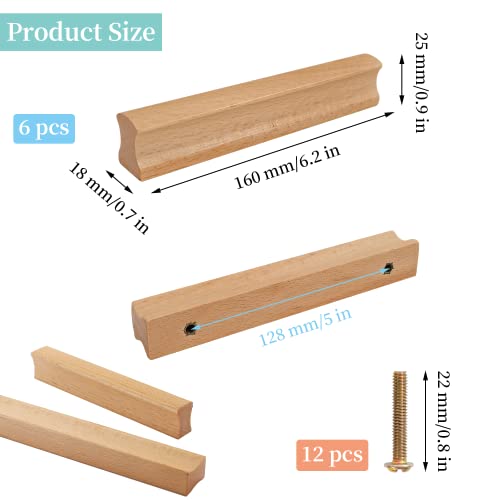 Taipintee 6 Pezzi Pomelli Cassetti per Mobili Cucina in Legno 128mm, Maniglie per Mobili da Cucina Moderni, Cassetti Naturale Pomelli Maniglia per Mobili, Adatta per Armadi, Comodino, Soggiorno