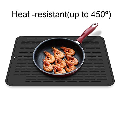 TAISHN - Tappetino scolapiatti, in silicone, ecologico, resistente al calore, antiscivolo X-Large 45cm*40cm Nero
