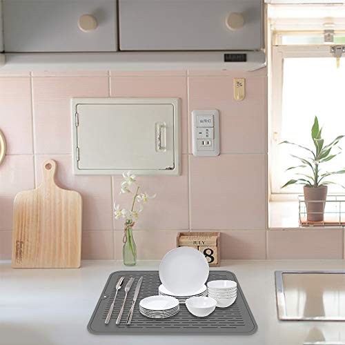 TAISHN - Tappetino scolapiatti, in silicone, ecologico, resistente al calore, antiscivolo X-Large 45cm*40cm Grigio