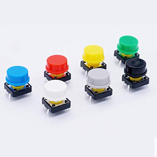 Contenuto della confezione: 70 x interruttore tattile momentaneo + 70 x cappuccio interruttore rosso blu nero verde bianco giallo grigio (ogni colore 10 pezzi)