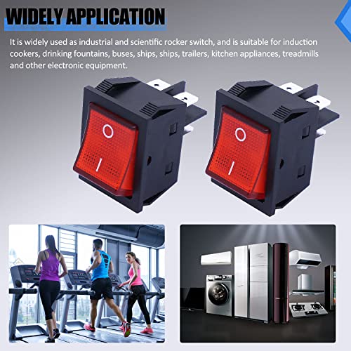 Taiss 2 pezzi 30A 250V Interruttore a bilanciere 2 Posizioni DPST 4Pin ON/OFF Interruttore a bilanciere pesante con LED rosso,per chauffe-eau,tapis roulant,machine à café KCD2-201N-Btype-R-30A