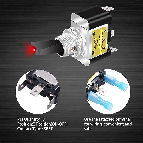 Taiss 2 pezzi Interruttore 12V 30A Interruttore a bilanciere 2 Posizioni SPST ON/OFF 3 terminali pin, interruttore a levetta illuminato rosso,con terminale FDFN2-250 ASW-07D-2-R-DZ