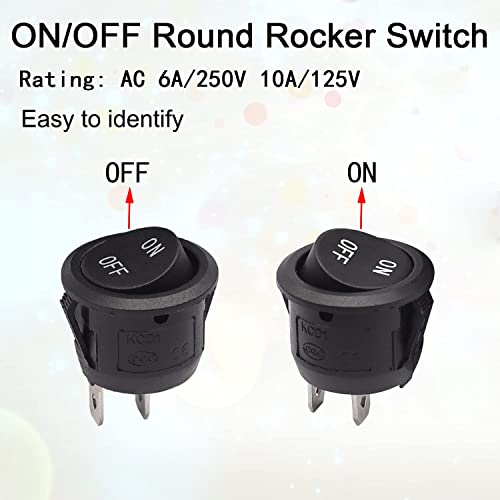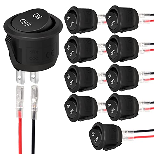 Taiss 10 pezzi ON OFF Interruttore a bilanciere 2 posizioni rotondi SPST 2 pin,con fili terminali bloccati da 4,8 mm,per auto Barca elettrodomestici,6A 250V 10A/125V AC KCD1-5-101-ON/OFF